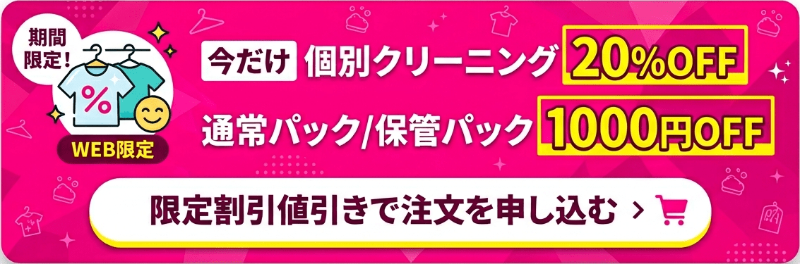 ※割引・値引きについてはクリーニング工場に到着時のサービス料金確定時に適用しての請求となります。上記金額は割引値引き適用前の金額です。